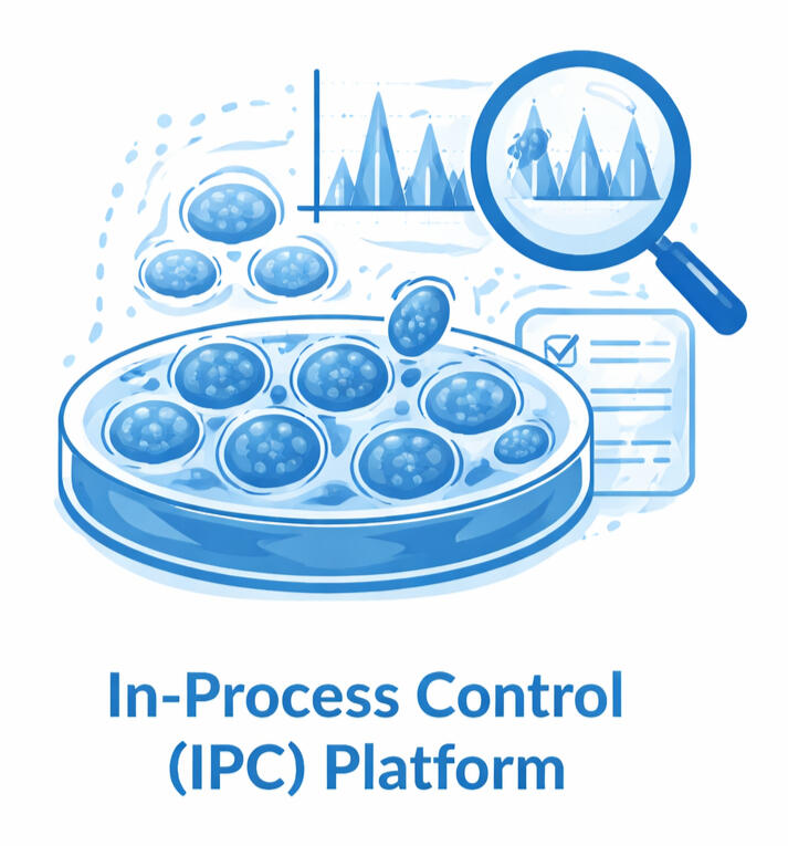 We develop in-process control (IPC) strategies based on the identification of stage-dependent biomarkers that reflect the progression and quality of cell differentiation and expansion processes.Reliable IPCs are critical for monitoring complex cell culture systems, enabling early detection of deviations and improving process consistency. By integrating meaningful IPC parameters early in development, it becomes possible to generate process-specific knowledge that supports optimization, scalability, and transition to GMP manufacturing.Cell therapy manufacturing processes are inherently variable, and the absence of robust IPCs can lead to batch failure, increased costs, and regulatory challenges. Implementing well-defined IPC strategies helps improve process control, reduce risk, and ensure more efficient use of time and resources, particularly in processes involving long culture times and costly media.Our IPC platform leverages advanced analytical approaches, including high-content molecular profiling techniques, to identify relevant biomarkers. Our approach combines advanced analytical methodologies with practical development experience to define IPC frameworks tailored to each specific process.